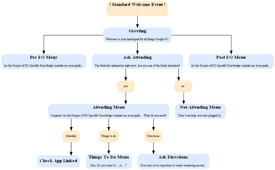 Google’s guidelines for this step and many blogs address how to write proper sample dialog. In contrast, the design of flows is rarely addressed.